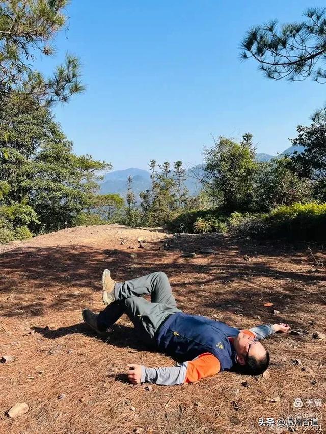 一进山,我们就往山中间的防火带向上攀爬。这个冬天的太阳格外灿烂,晴天里没有风,防火带的土地很干燥。走到一个歇脚点,队长快乐地在土地上放松、躺平,地上落满了松针和树叶,看得出来他很喜欢大自然。