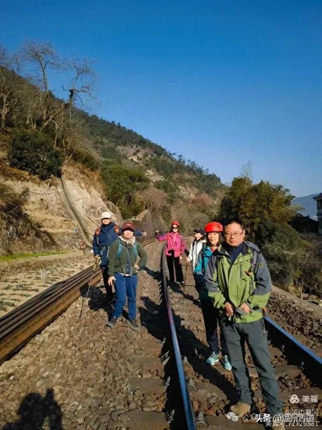 洞背山脊在青田石门洞飞瀑景区的背部。要经过一村,村名叫洞背村,又名伯温古村,相传刘伯温在石门书院求学时,常到此村探古访幽。周日,我们一行七人早上7:30出发,驱车从梅岙上高速,青田下高速,最后到达瓯江南岸石门渔村停车场。停车场后有一铁路,绿皮火车缓缓从山间经过。我们穿过铁路的铁轨,在上面合影,阳光洒落在我们身上,让人觉得温暖。