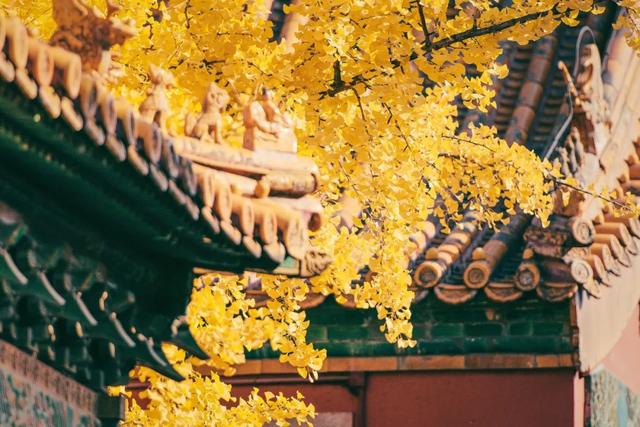 颐和园的昆明湖畔,银杏树和枫叶交相辉映,金色的叶子如同洒落的黄金,映照在碧波荡漾的湖水中,泛起点点金光。沿着长廊漫步,抬头望见那一树树金黄,仿佛置身于一片金色海洋。正如唐代诗人王之涣所言:“白日依山尽,黄河入海流。欲穷千里目,更上一层楼。”在这层层叠叠的秋色中,登高望远,心也随之开阔。