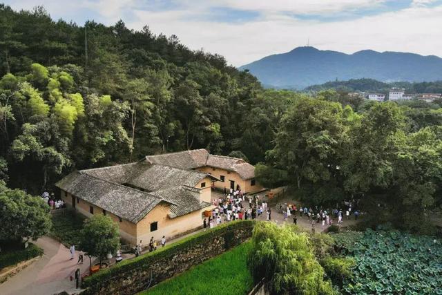 伫立在故居之前,一股浓郁而厚重的历史气息,如潮水般扑面而来,让人不禁心生肃然起敬之感。这座故居整体呈坐南朝北之势,是一座凹字型土木结构的普通农舍。房后,山坡上青竹翠柏郁郁葱葱;房前,池塘里荷花绽放,美不胜收,实乃一处名副其实“前有罩,后有靠”的风水宝地。其总占地面积达566.39平方米,建筑面积为472.92平方米。