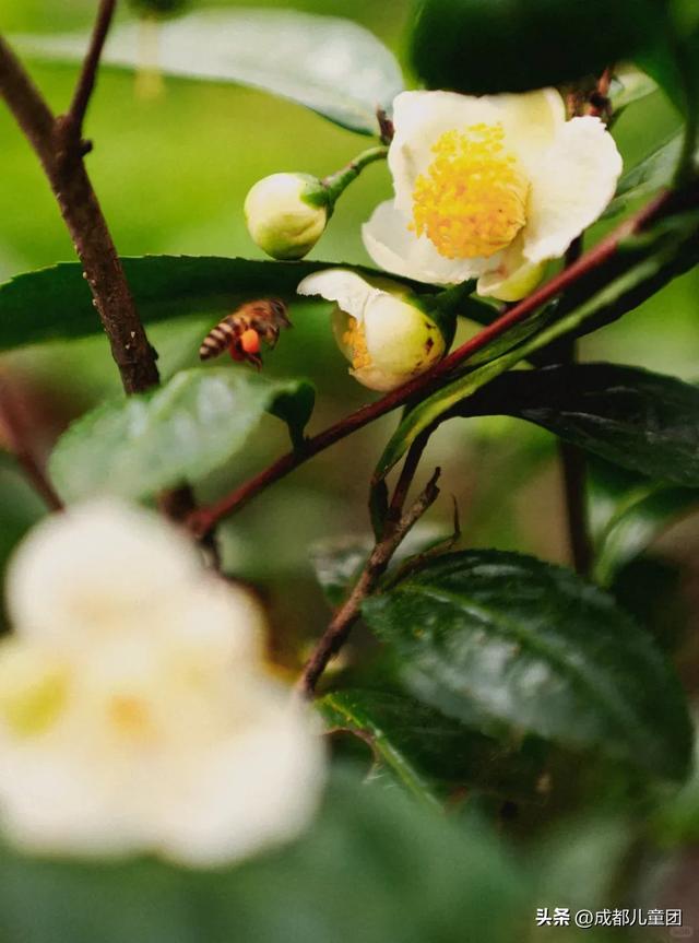 茶树一般在10月下旬到11月中下旬是盛花期,一朵茶树花从花瓣张开到凋落只有约50小时,看到就是“赚到”。