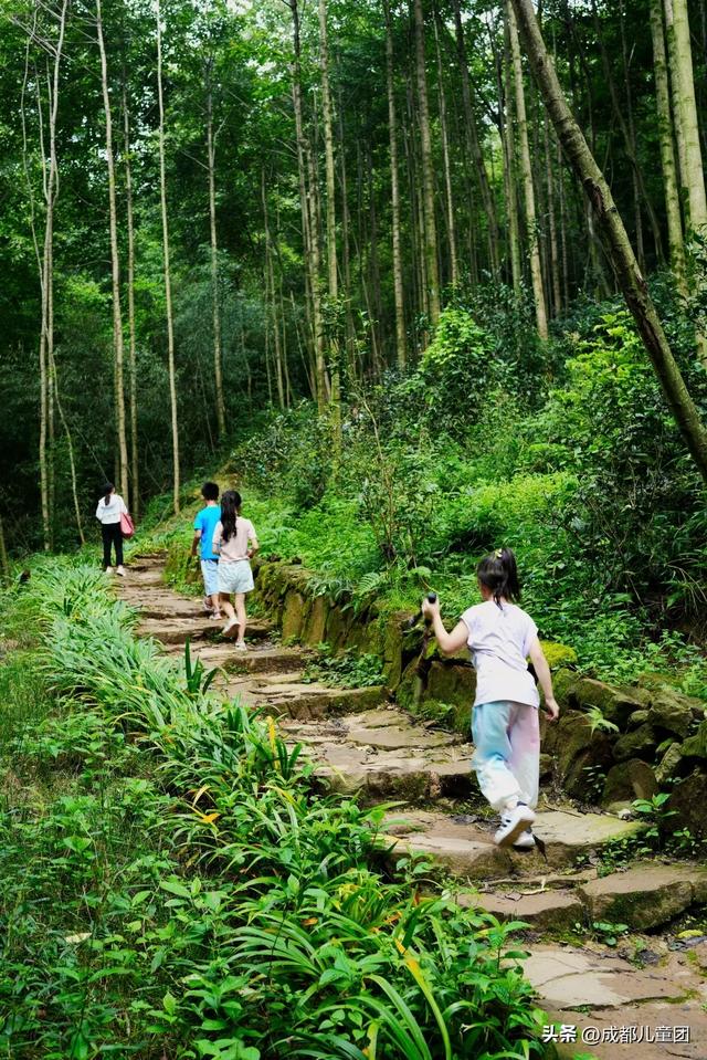 李冰当年在这里劈山引水,爬山的过程也是带孩子去走一走前人导洛通山的印记,沿途还可以看到很多古老茶园。